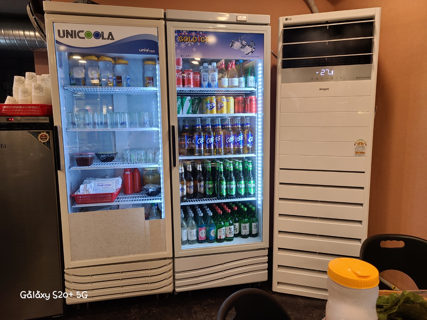 가게에 문을 열고 들어가니 음료 냉장고와!! 에어컨이 반겨 줍니다.ㅋㅋㅋㅋ 그리고 곳곳이 벽걸이형 선풍기가 설치되어 있고 불을 피우는 고깃집인데도 덥다라는 생각은 안들어서 좋았습니다.