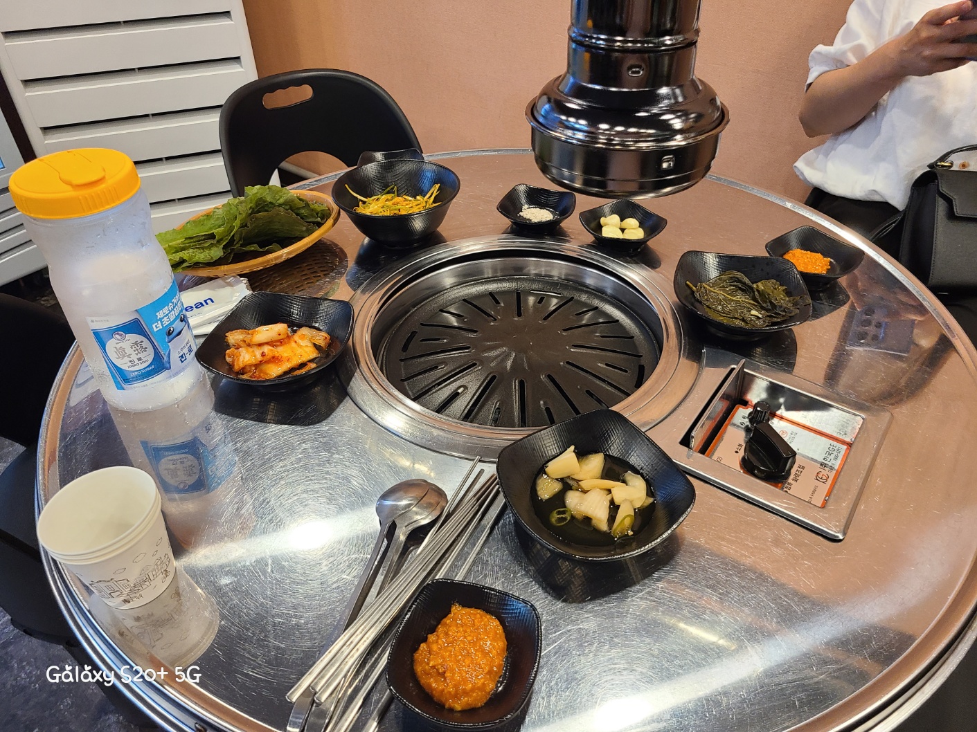 밑반찬은 김치 깻잎짱아찌 양파짱아찌 쌈채소 쌈장 마늘 소금 파절이 이렇게 제공해 주시네요.요렇게 된장찌개도 나옵니다.고깃집에 필요한 부분은 빠짐없이 나오니 좋습니다.!!!!!!!!